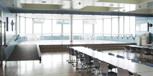 - 5階展望ホールは、お弁当などが食べられる休憩スペースです。