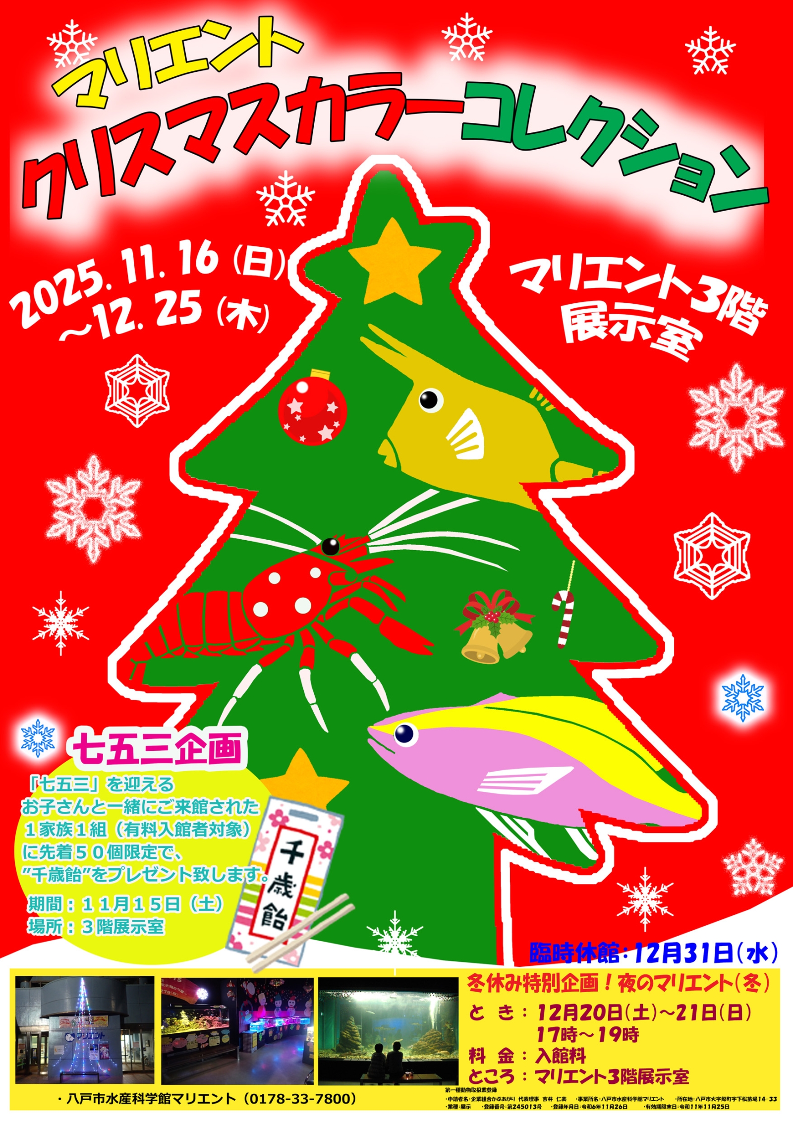 カラフルで可愛らしい魚たちと、マリエントならではのクリスマスを是非多くの皆様にお楽しみいただきたいと思います。