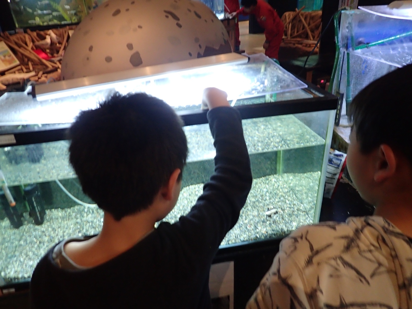 普段は入れない水槽の上からエサやり体験や、水槽の掃除や水替え等の水槽作業、様々なお仕事体験が出来ます。