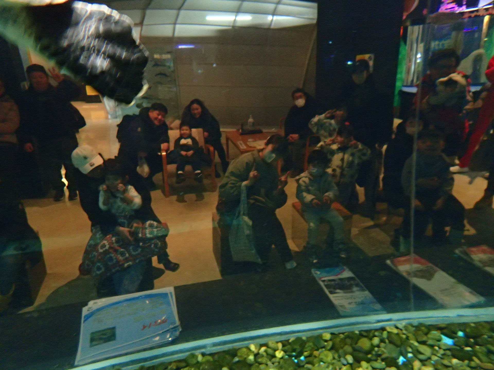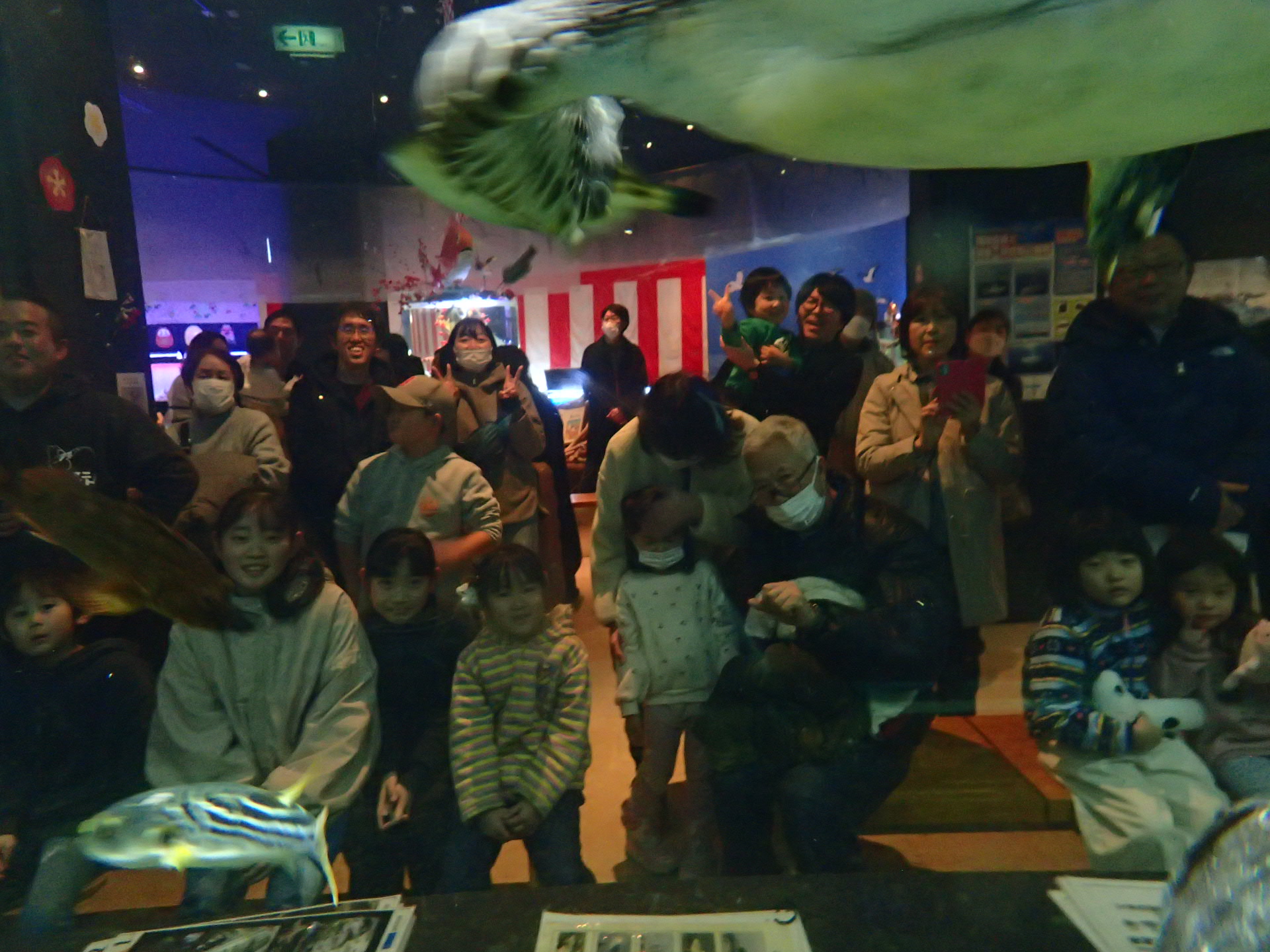 大水槽内からマリンレンジャーが皆さんを撮影します。