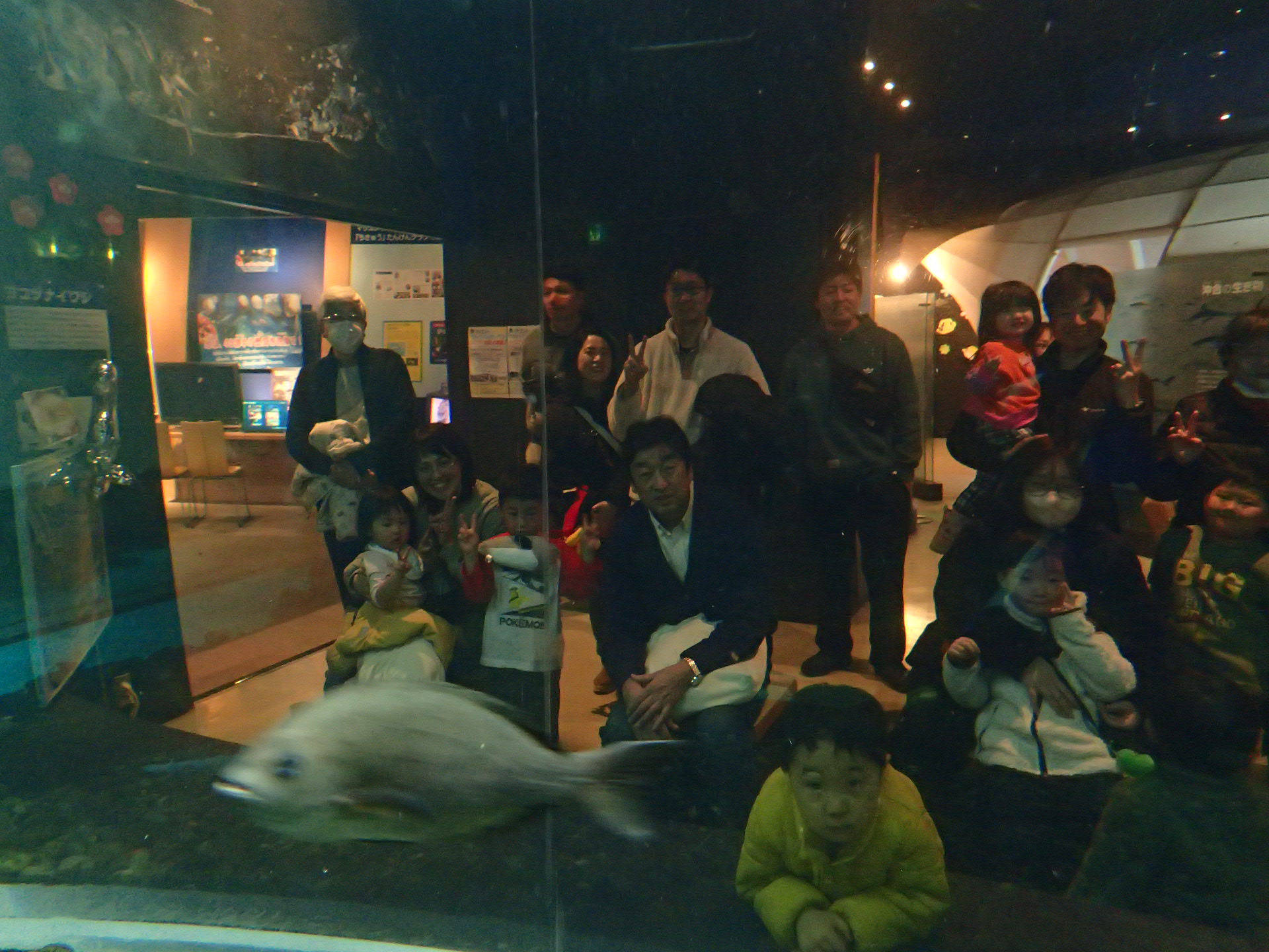大水槽内からマリンレンジャーが皆さんを撮影します。